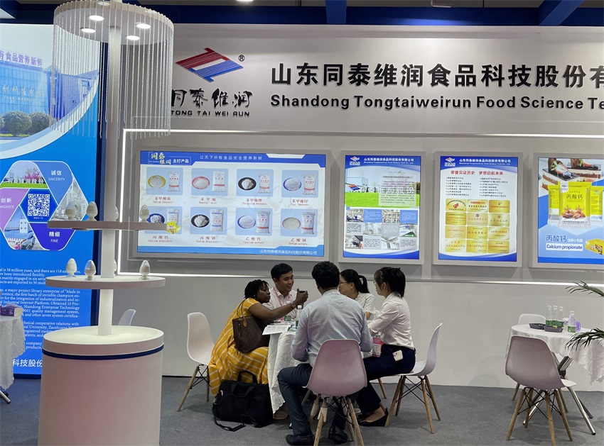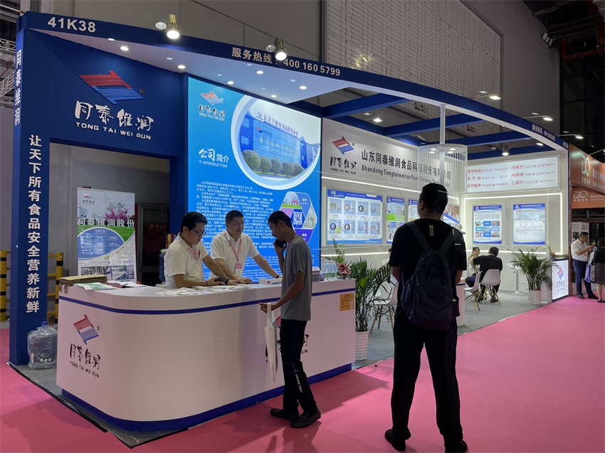 在本屆展會上,同泰維潤公司帶來了多款優(yōu)勢產(chǎn)品:苯甲酸鈉、苯甲酸、苯甲酸鋅、苯甲酸鉀、丙酸鈣、丙酸鈉、乙酸鈣、乙酸鈉等多種產(chǎn)品,從產(chǎn)品原料、生產(chǎn)工藝、包裝、客戶體驗等多個方面向客戶直觀的展示產(chǎn)品,受到廣大客戶的重點關(guān)注及咨詢索樣。